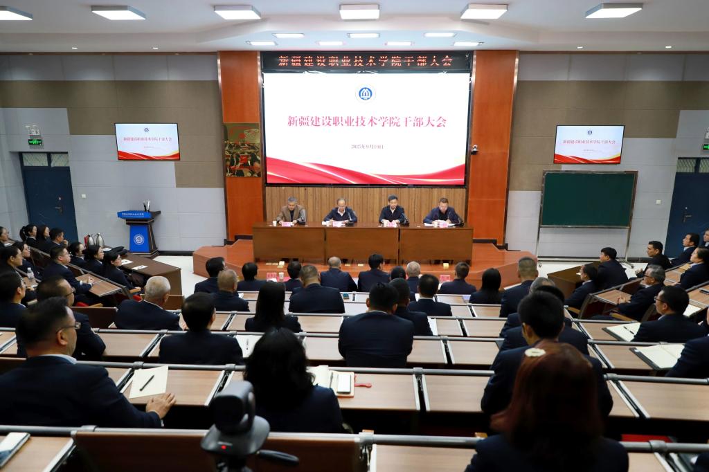 9月19日下午,新疆建设职业技术学院召开干部大会,宣布自治区党委、自治区党委组织部关于学院领导班子的任职决定。自治区教育厅党组成员、副厅长许高勇出席会议并讲话。自治区党委教育工委、自治区教育厅人事处处长牛志强主持会议。