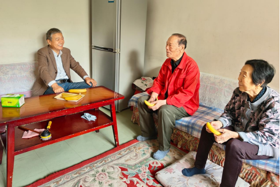(学院党委副书记张新强(中)带队走访慰问退休干部周文鸿)