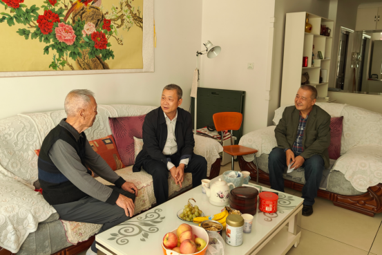 (学院党委副书记秦拥军(左一)带队走访慰问退休干部吴振忠)